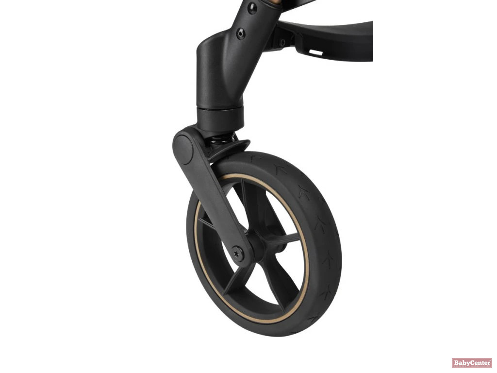 A nagy méretű, gumiból készült kerekek és az első-hátsó felfüggesztés gondoskodnak róla, hogy ne csak sima járdán, hanem egyenetlen terepen is stabil és kényelmes legyen a haladás. Ez ritkaság egy kompakt sportbabakocsinál.