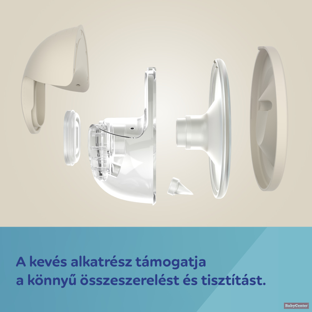 – Kíméletes szilikon tölcsér, amely nem húzza túl mélyre a mellbimbót