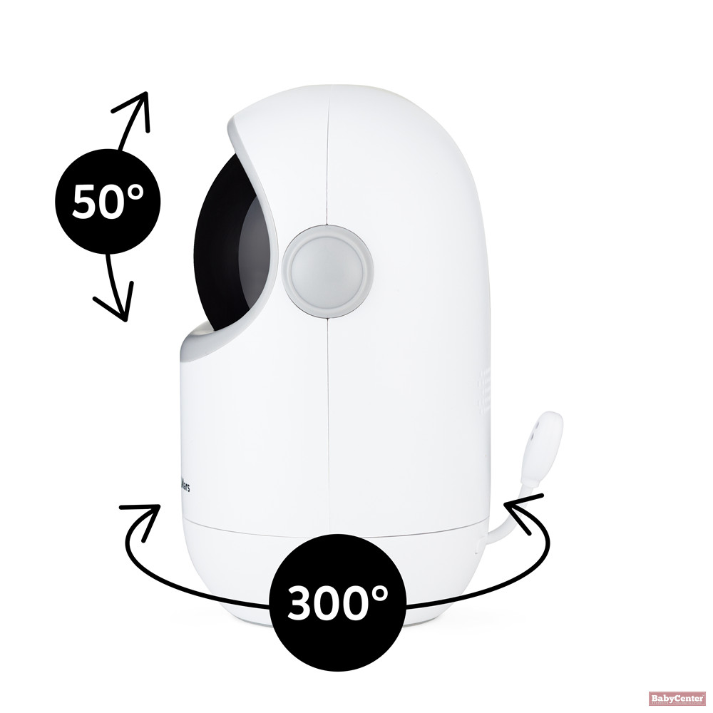 A kamera 720p HD felbontásban továbbítja a képet a szülői egység 5 hüvelykes kijelzőjére, így minden részlet jól látható. A kamera 300°-os vízszintes forgással és dönthető optikával rendelkezik, így a kiságy vagy a játéktér teljes területe megfigyelhető. A 68°-os látószög segít abban, hogy mindig átlásd a baba környezetét.