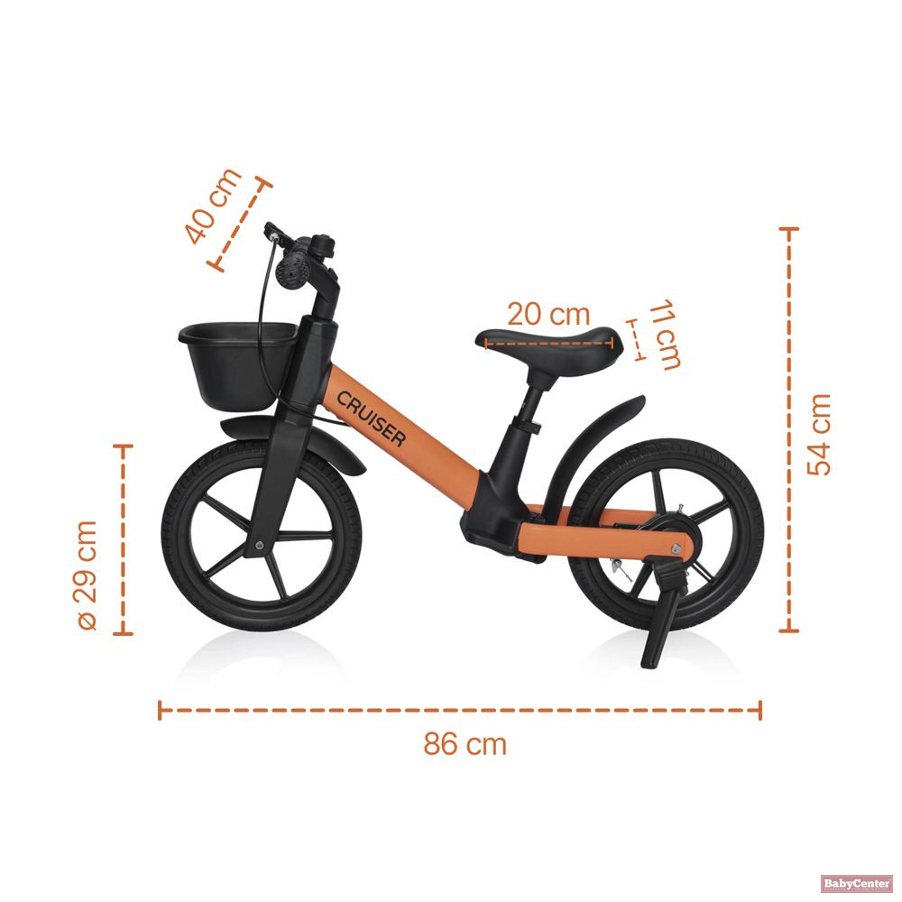 A részletekben is megmutatkozó design – a praktikus első kosár, a sárvédők, a csengő és a letisztult forma – egy igazi „kis cruiser” hangulatát idézi, amelyet a gyerekek és a szülők egyaránt szeretnek.