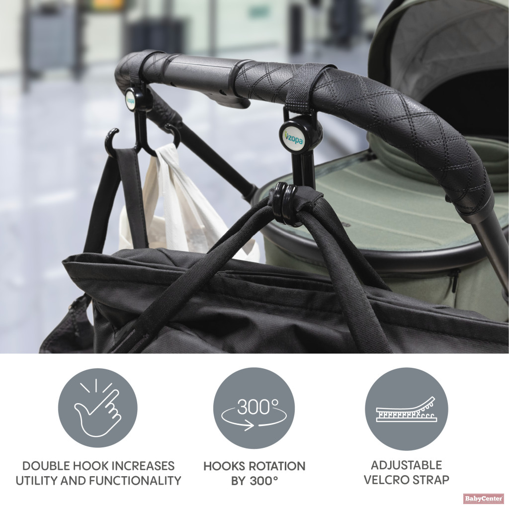 A Zopa dupla babakocsi kampó kiváló segítség, amikor több táskát kell magaddal vinni babakocsis séta vagy vásárlás közben. A kampók egyszerűen a babakocsi tolókarjára rögzíthetők egy masszív velcro (tépőzáras) pánt segítségével, így nem kell a kosárba összegyűjteni minden dolgot.