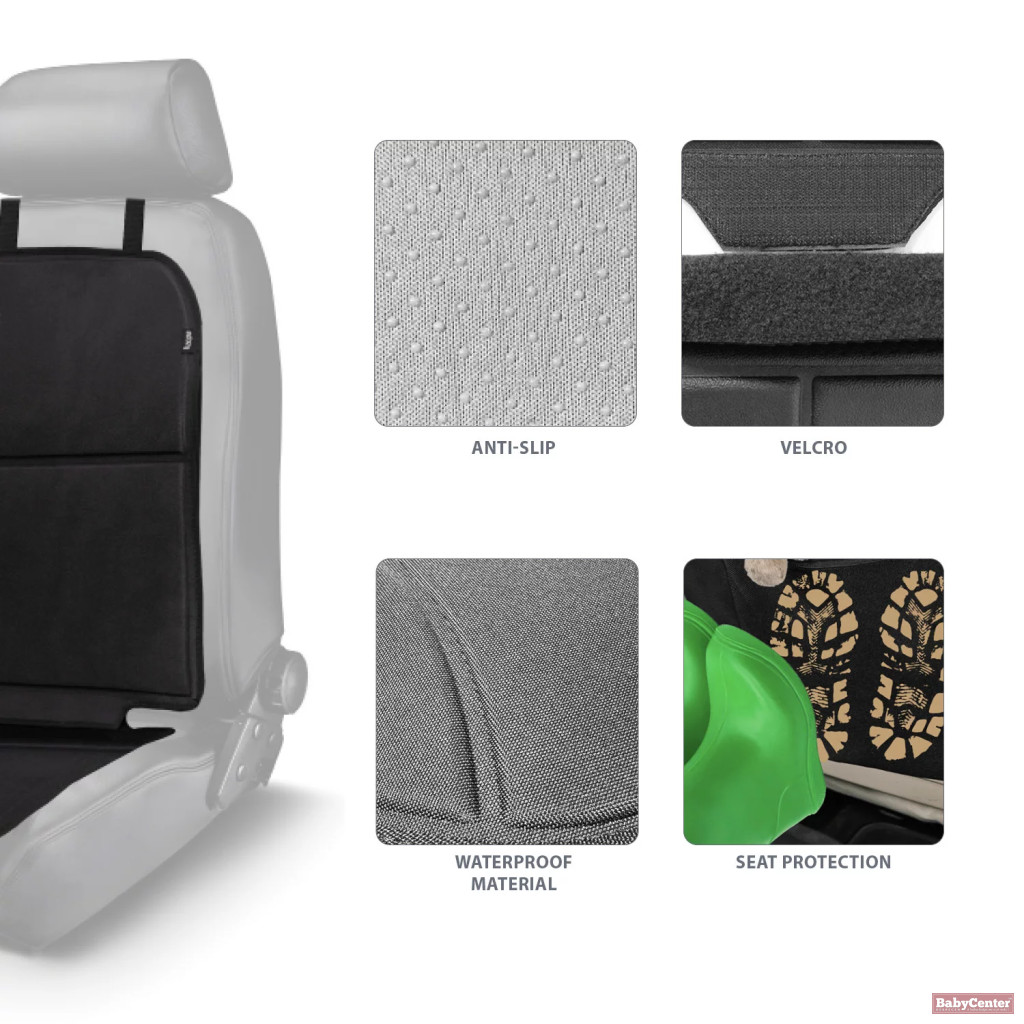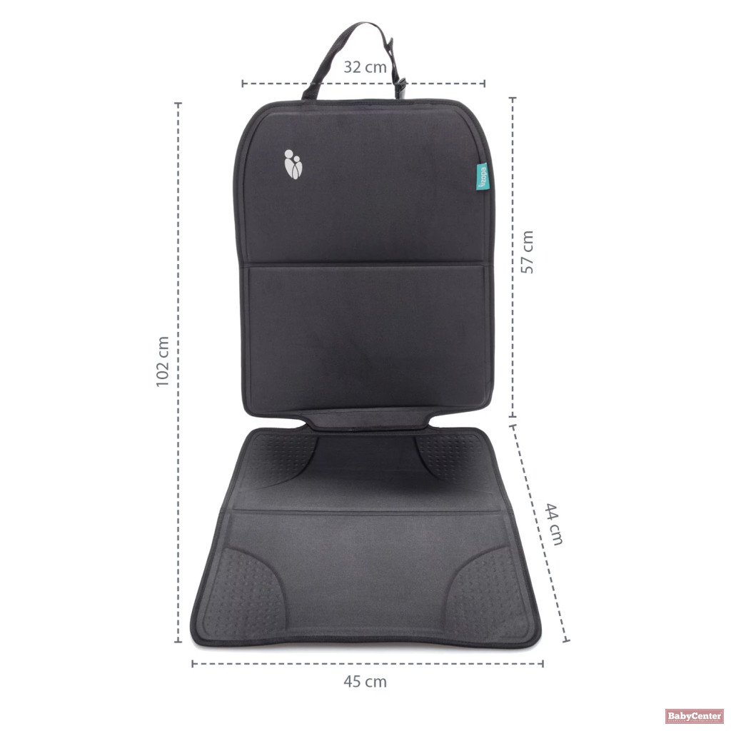 A formázott alsó rész segít megakadályozni, hogy a kosz vagy morzsák az autó ülésére kerüljenek, így a jármű belső tere tisztább marad. Amikor nincs rá szükség, a védő könnyen összehajtható, és a praktikus hordozópántnak köszönhetően egyszerűen szállítható vagy tárolható.