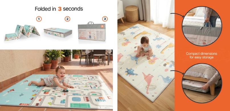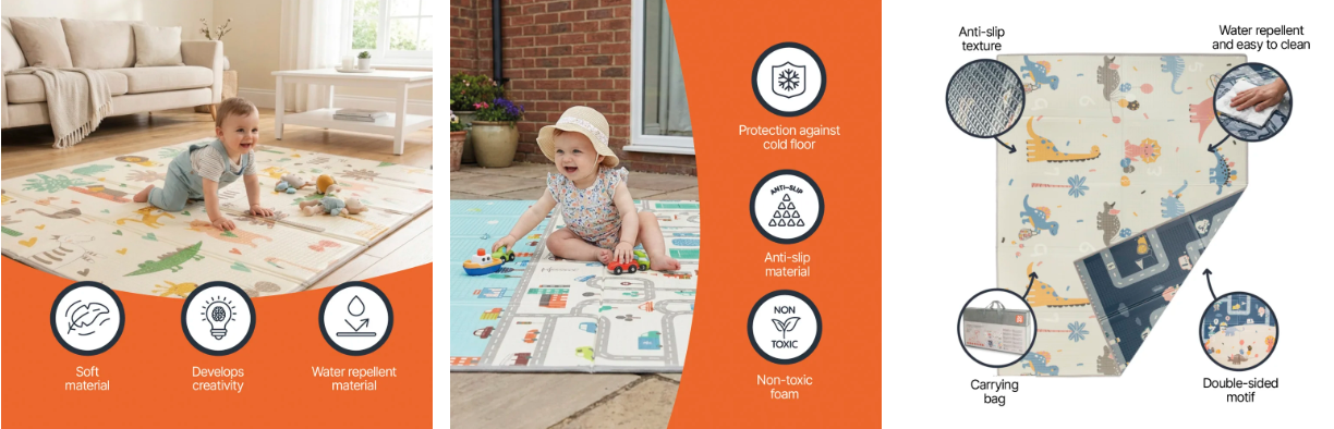 – Puha és biztonságos felület – a habszivacs elnyeli az esések ütéseit és védi a gyermeket a kemény padlótól.