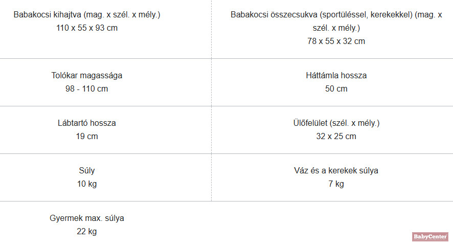 – Kompakt és könnyű: mindössze 55 cm széles, súlya sportüléssel együtt is csak 10 kg