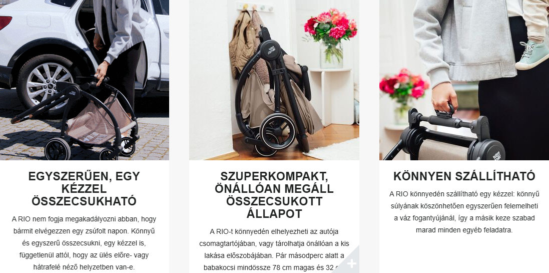 A Britax Römer RIO tökéletes választás a városi családoknak, akik születéstől egészen 4 éves korig szeretnének praktikus, biztonságos és kényelmes megoldást a mindennapi közlekedésre. Kompakt méretének és könnyű súlyának köszönhetően egyszerűen manőverezhető még a zsúfolt utcákon és szűk átjárókon is, miközben minden helyzetben maximális kényelmet biztosít a babának.