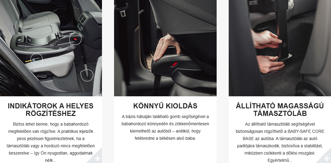 – ISOFIX-es bázissal (BABY-SAFE CORE BASE) vagy autó biztonsági övével is használható
