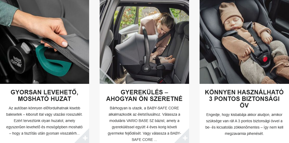 – Egyetlen kattintással csatlakoztatható és leválasztható babahordozó